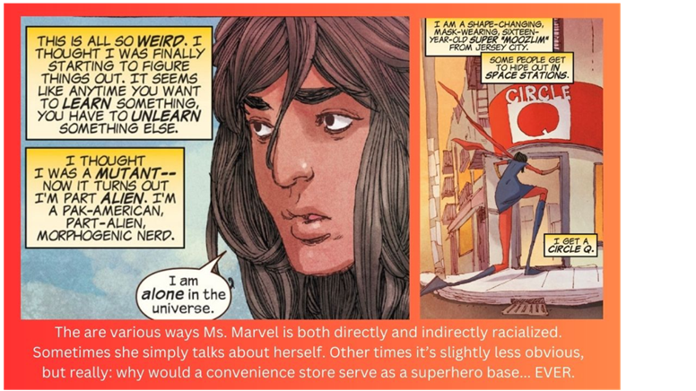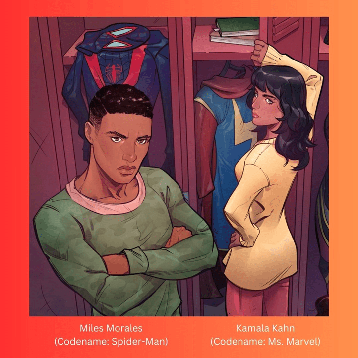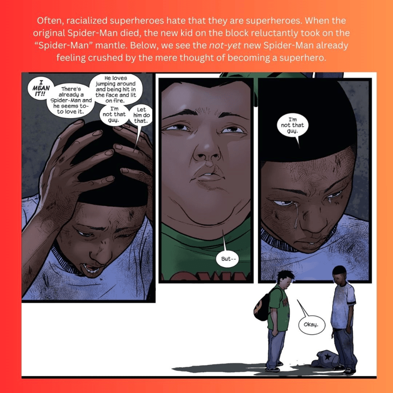 I know two characters that can help us answer this question, and they just so happen to be my two favorite racialized superheroes of ALL TIME. That would be the Afro-Latinx, Puerto Rican Spiderman (Miles Morales) and the Muslim, Pakistani American Ms. Marvel (Kamala Kahn)!