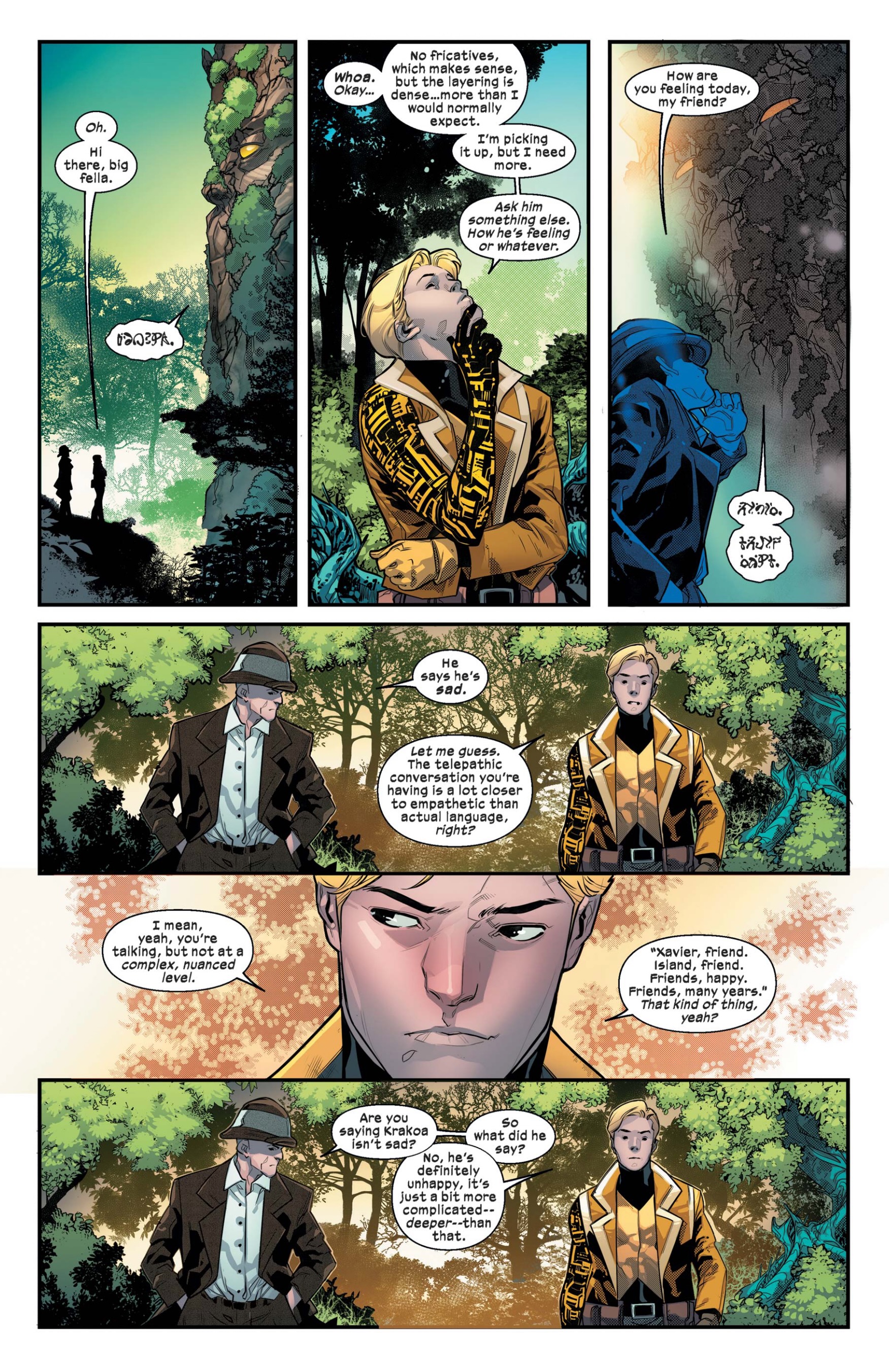 Professor Charles Xavier, telepathic mutant leader, introduces Doug Ramsey to Krakoa, the living island, in Powers of X #4 (Hickman et al. 2019c, 16).