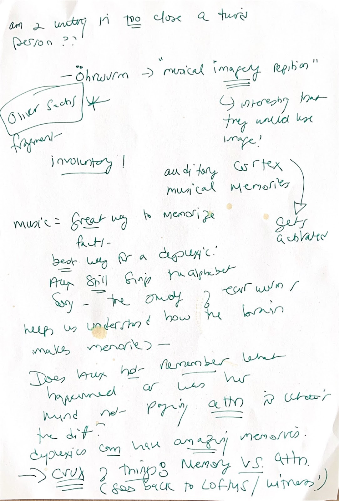 Roxanne: Here’s a note from my own research –you can see my own dysgraphia on full display along with coffee stains (Norway has amazing coffee!) These are what my field notes look like!!!